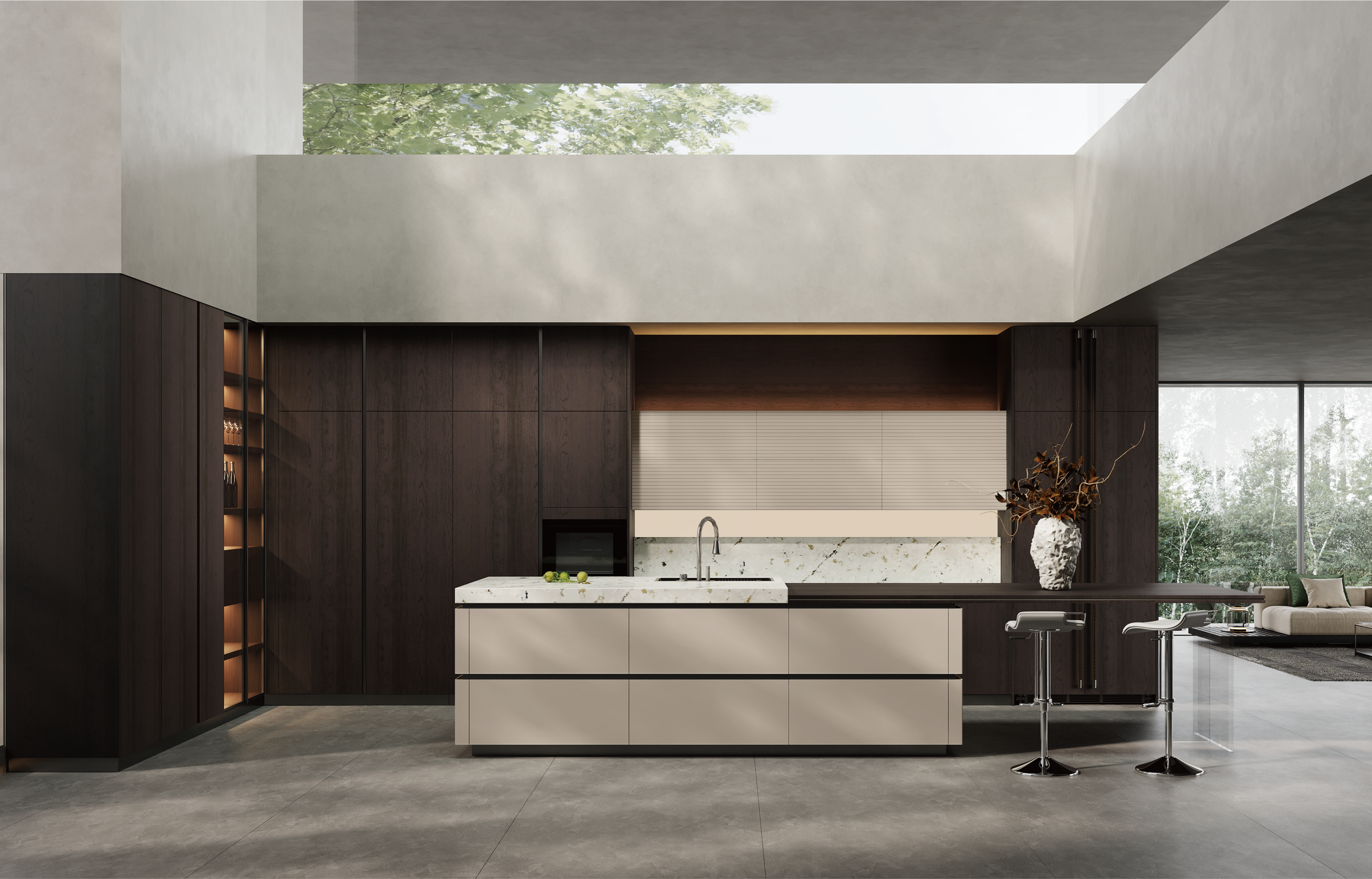 通过k1体育厨柜量体裁柜,定制出适合主厨下厨的烹饪区和洗涤区的舒适高度。